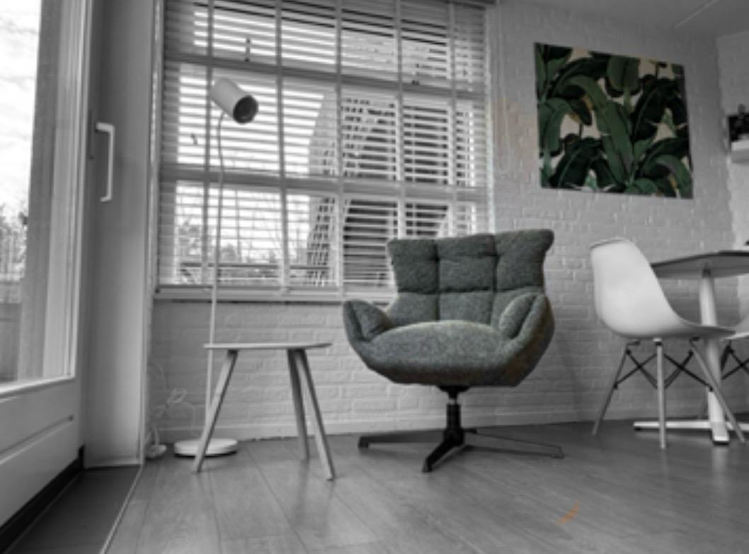 Zo moesten de twee designstoelen vervangen worden. Deze stoelen waren prachtig om te zien. En pasten in de stijl van de studio. Echter kregen we een aantal klachten dat deze stoelen geen comfortabele zit hebben om er bijvoorbeeld een boek in te lezen. En zeg nu zelf: relaxed een boek lezen in een luie fauteuil is iets wat bij een heerlijk verblijf op Schiermonnikoog hoort. We zijn echte designliefhebbers. Het zal je dus niet verbazen dat we met pijn in het hart de twee stoelen weg doen. Maar zo is het ook, iets nieuws uitzoeken is ook leuk. Zo blijkt maar weer dat elke klacht een cadeautje is. Vanaf heden kun je heerlijk relaxed zitten in een trendy stoel. Het is één stoel geworden om ook nog voldoende loopruimte te houden naar buiten toe. Ook blijkt dat bij grote regelmaat slechts één gast verblijft in Zeekoers.